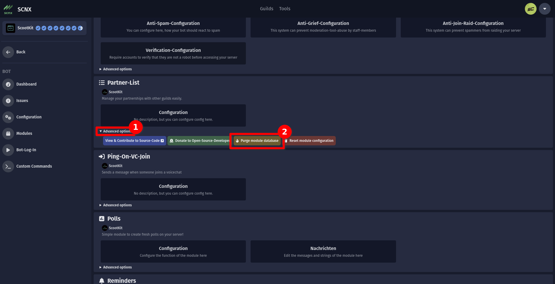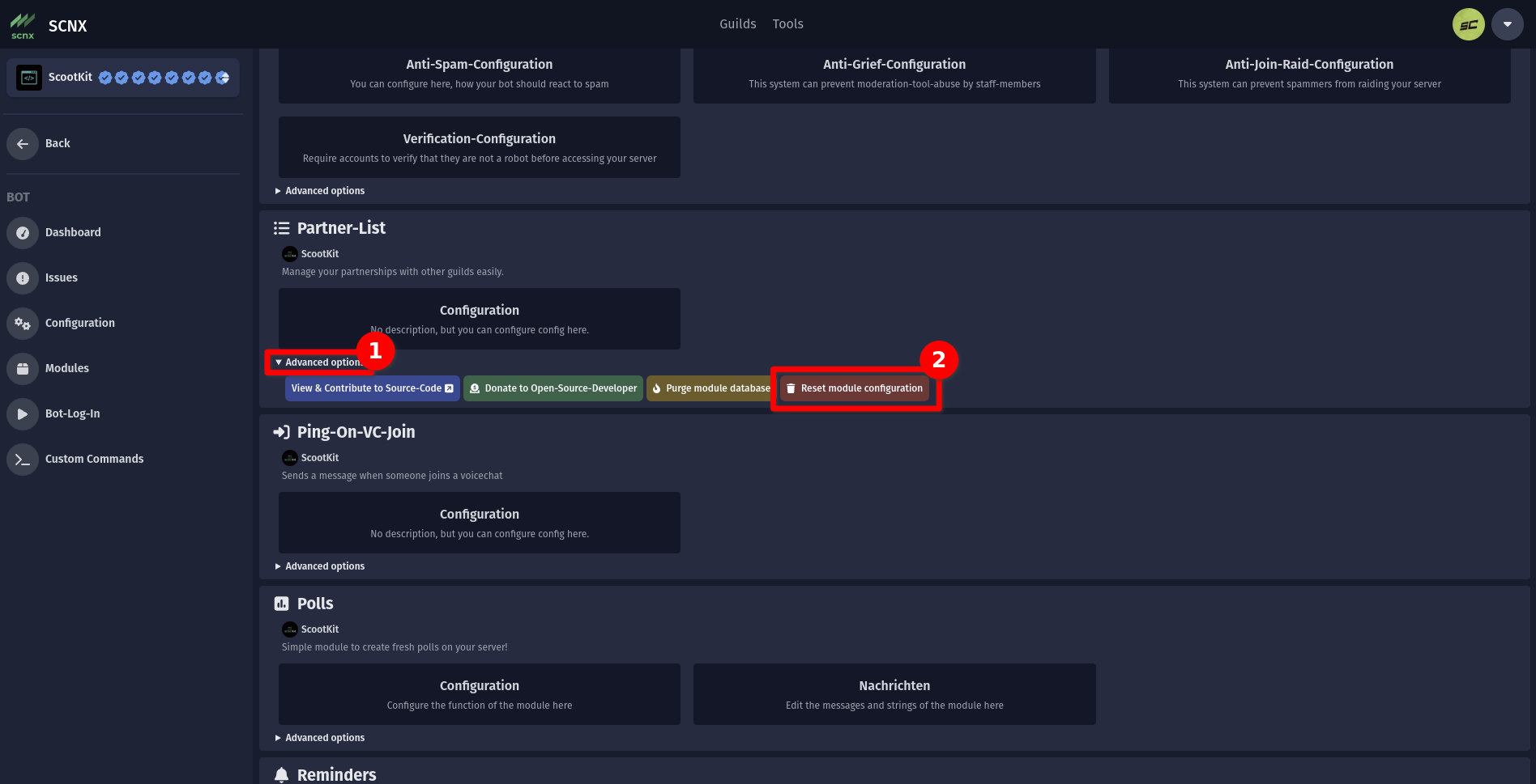 Resetting the configuration of a module to its default values will permanently delete all customizations and changes you made to the module configuration.